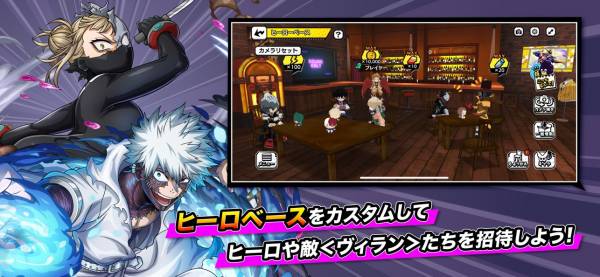 ▲購買部でアイテムを購入したり、ヒーローベースでは好きなキャラを自由に配置したりすることも可能。