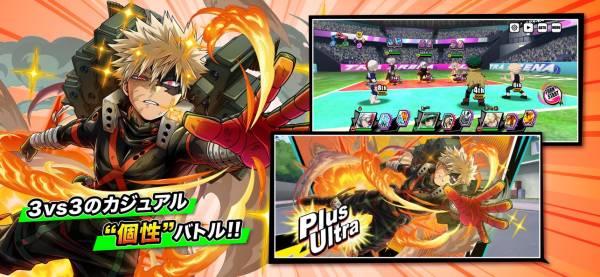 - 3vs3で敵と戦いトップヒーローを目指す、ヒロアカのバトルRPG