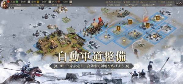 三国志の時代を舞台にしたストラテジーゲーム。資源や加速アイテムへの課金がなく、純粋にリソース管理など腕が問われるストイックなシステムが特徴です。また行軍距離に応じ戦力が低下するため、定期的に拠点を挟むリアルな戦略性も魅力。同盟に加わって仲間と力を合わせ、多くの武将とともに勢力を拡大していきましょう。