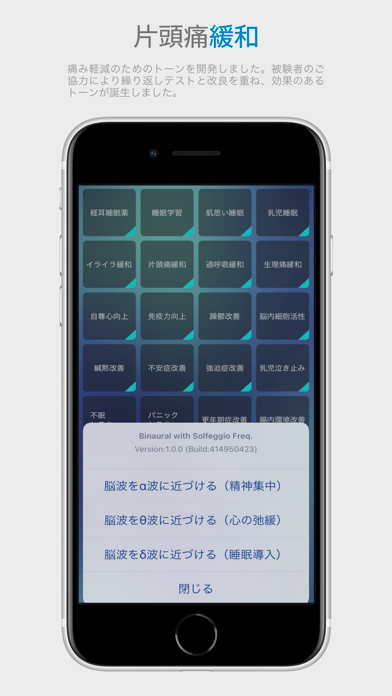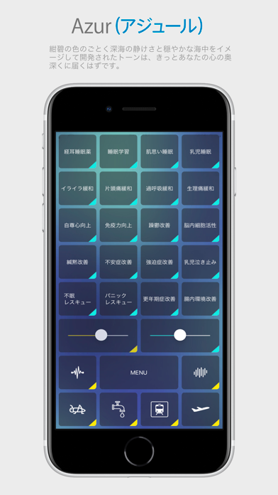 - 安眠や痛みの緩和に効く20種類のヒーリングサウンドを収録したアプリ
