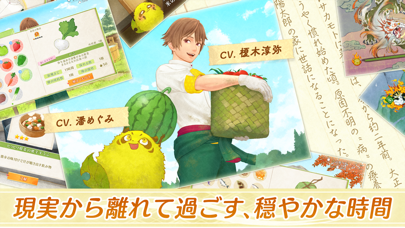 癒やし系男子と怪物との共同生活を描いた親密なゲーム体験ができるアプリ。昼間は自然豊かな田舎で畑仕事を手伝い、夜は大怪モノとのバトルに挑むという、日常と冒険の二つのゲームモードが特徴です。フルボイスのキャラクターとの会話や日記機能を通じて物語を追体験できます。