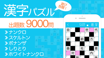 漢字を使ったナンクロやスケルトンを楽しめるパズルアプリ。全部で5つのルール、8,000以上の問題を収録しており、存分にやり込める内容となっています。1問あたりにかかる時間もそう多くないので、ちょっとした頭の体操にはピッタリ。