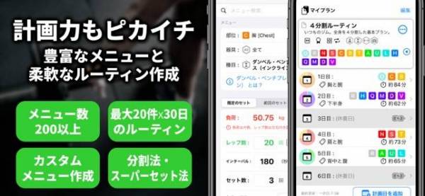 - 1週間のトレーニングメニューを作成。運動をルーティーン化できる