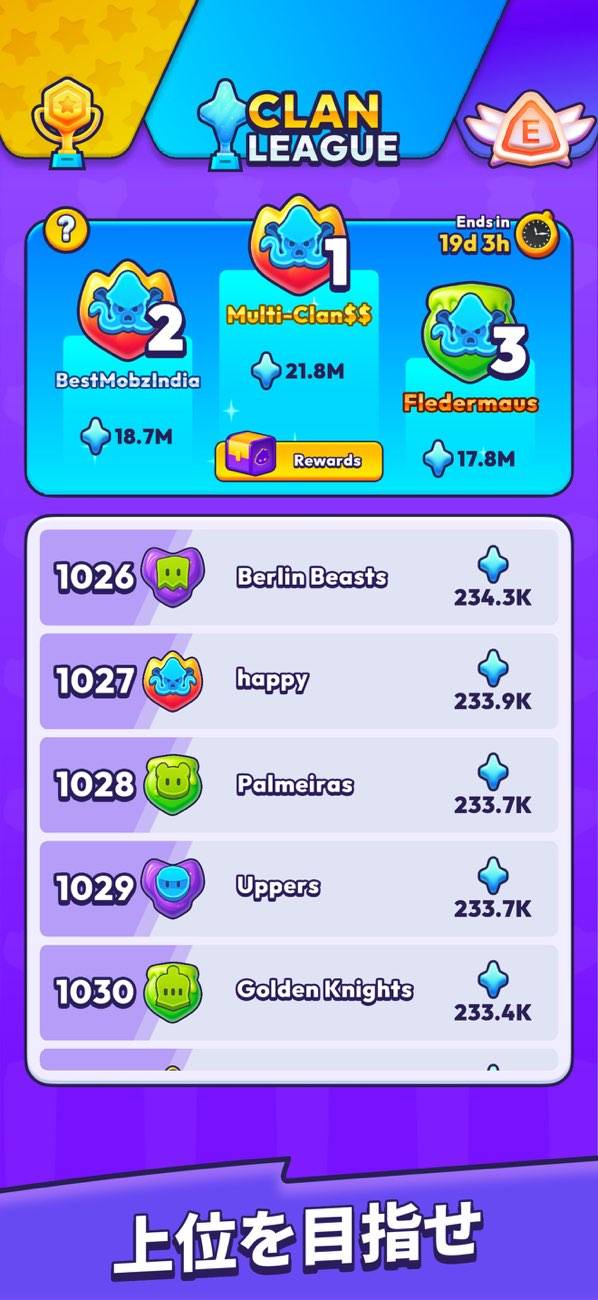 ステージクリアでもらえるコインを使って、アップグレードしてみましょう。アップグレードは「発射速度UP」「巨人パワー」「報酬」の3項目。たとえば「発射速度」を上げれば、キャラを発生させるスピードが上がり、数で敵を圧倒できます。