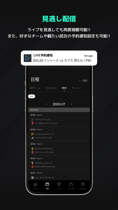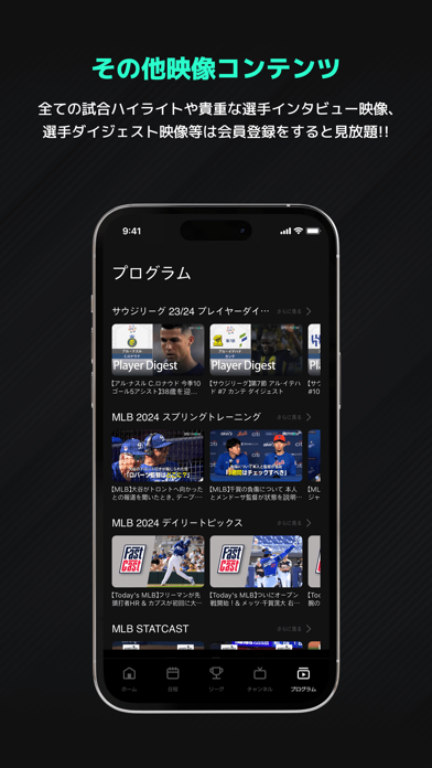 - スマホ1台でメジャーリーグの高画質LIVE配信を楽しめる