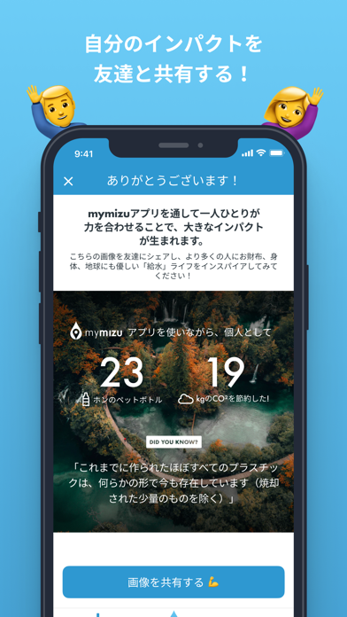 給水スポットを地図で見つけ、環境保全にも興味を持てるアプリ。外出中の水分補給をサポートしてくれます。ペットボトルを買わずに給水したことによって、どれだけ環境保護に貢献したかがわかるのも楽しいポイント。