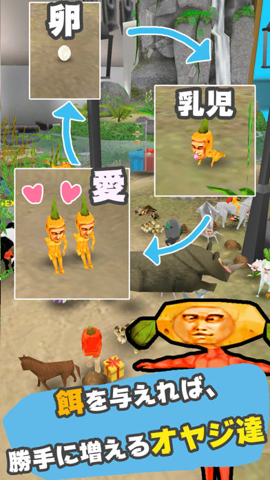 - 水槽に「オヤジ」を入れて大量繁殖させていく育成ゲーム