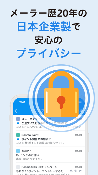 - 銀行の認証にも使用可能な、高セキュリティのメールアドレスを作れる