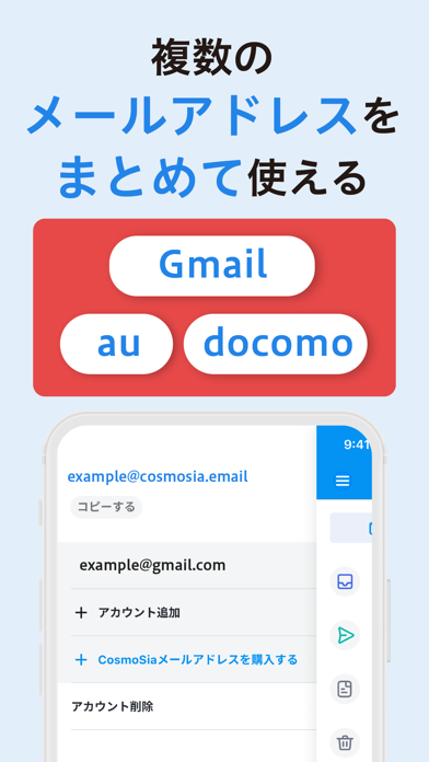 - GmailやYahoo!メール、キャリアメールなどをまとめて管理