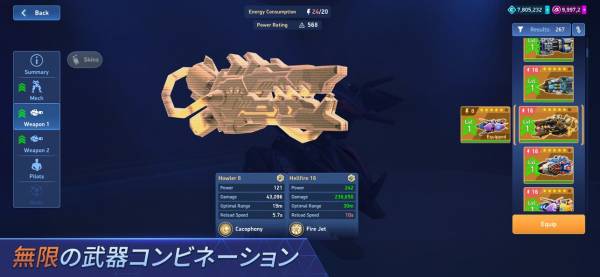 - 消費エネルギーを使用してロボットをカスタム。試行錯誤するのが楽しい