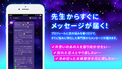 - 恋愛や人間関係の悩みを、カウンセラーにチャットで相談できるアプリ