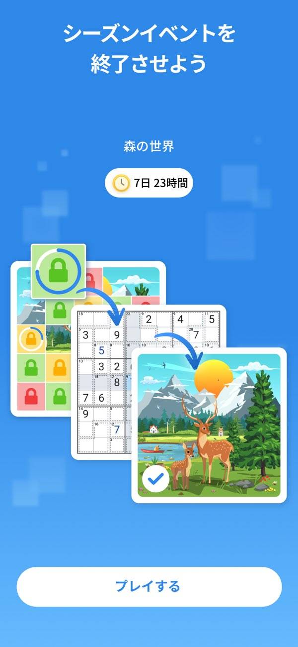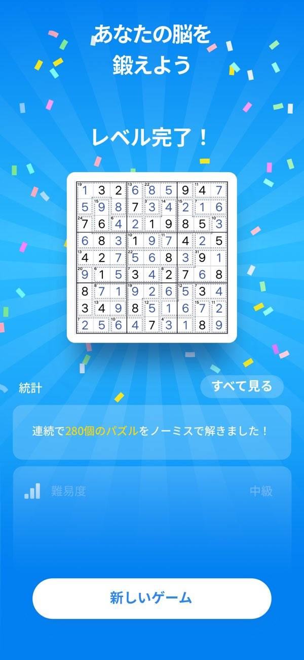 シンプルなナンバーパズル(数独)を楽しめるアプリです。一般的なナンプレと同じように、全ての横の列、縦の列、3x3ブロックを1~9の数字で埋めていきます。難易度を選択したり、ヒント機能を活用したりと、ナンプレ初心者の方も気軽に遊べるのが特長です。