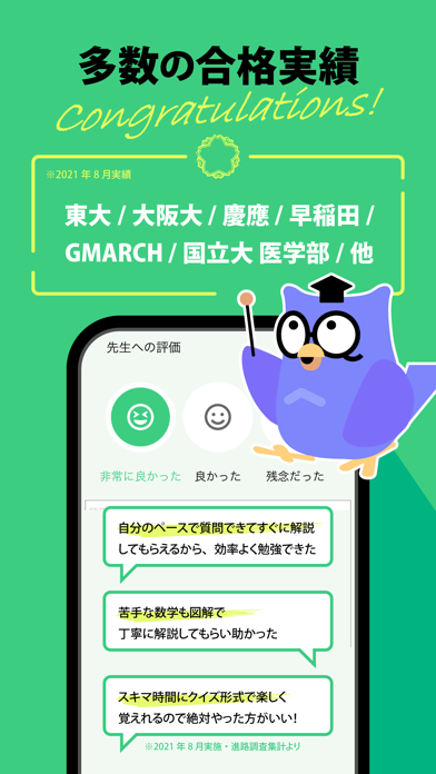 子供が勉強でわからないところが出てきた時に利用しています。質問を投稿しておけば先生が答えてくれて、チャットなのでやり取りも好きな時にでき大変便利です。どの先生も子供が理解するまで図も交えながら教えてくださり、熱意と優しさにあふれた方ばかりです。