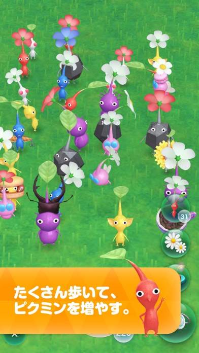 - 歩いた分だけピクミンが育ち花を咲かせる。育成と歩数記録を同時進行