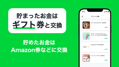 ミッション達成によって貯めたお金は、ギフト券と交換できます。Amazonギフト券やユニクロのギフトカード、コンビニで使える割引券などがラインナップ。数百円から各種ギフト券や割引券と交換できるのがメリットでしょう。