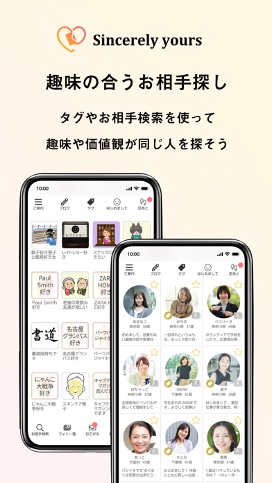 「いいね!」や「マッチング」ではなく、「はじめまして」から関係が始まります。相手を値踏みするような印象がなく、挨拶を送り合うような自然な出会いが可能。一般的なマッチングアプリのようにアピール感も少ないため、「はじめまして」を気軽に送れます。