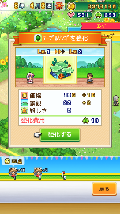 ▲ゴルフ場内の施設を充実させていくと、ランクアップ。宣伝もして最高の店に仕上げよう。