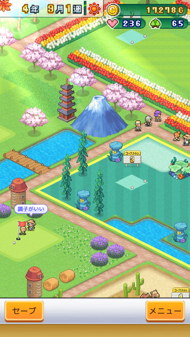 - フェアウェイやバンカーを置いて、自由にコースを作れる経営SLG