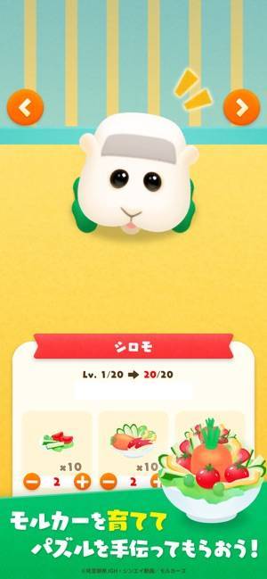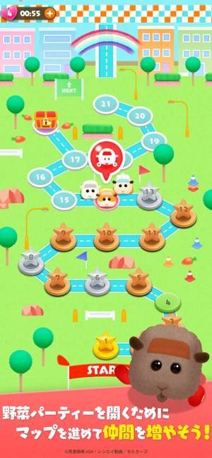 野菜を与えてモルカーを育成するとレベルが上がります。クリアできないときは試してみるといいでしょう。