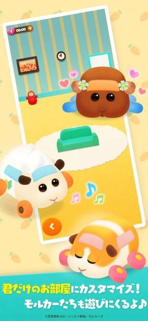 画面に並んだ同じモルカーを3つ以上並べて集めるマッチ3パズル。縦・横・斜めにモルカーをつなげられるので、多少難しい配置でもサクサク集められ、シンプルかつ爽快感があります。またモルカーを集めておうちでお世話するなど、モルカーのかわいさも存分に楽しめます。