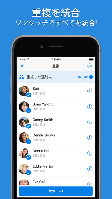 アドレス帳をスマートに整理可能。重複している連絡先や名前がない連絡先を瞬時に検出し、統合・削除してくれます。ゴチャゴチャしたアドレス帳もすっきり整頓され、使いやすくなります。