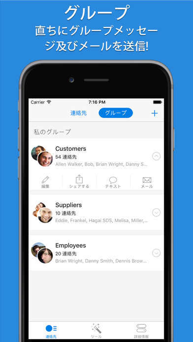 グループ管理で連絡先が一目瞭然