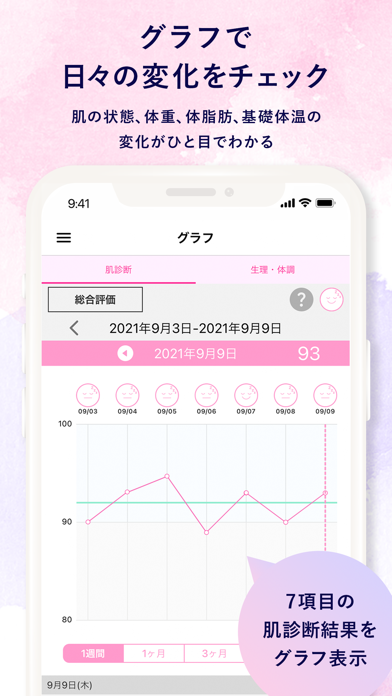 女性の悩みやコンプレックスを解決まで導くアプリです。肌診断、体重管理、生理管理など7つの項目から、気になる項目をカスタマイズしてカレンダーに表示できます。