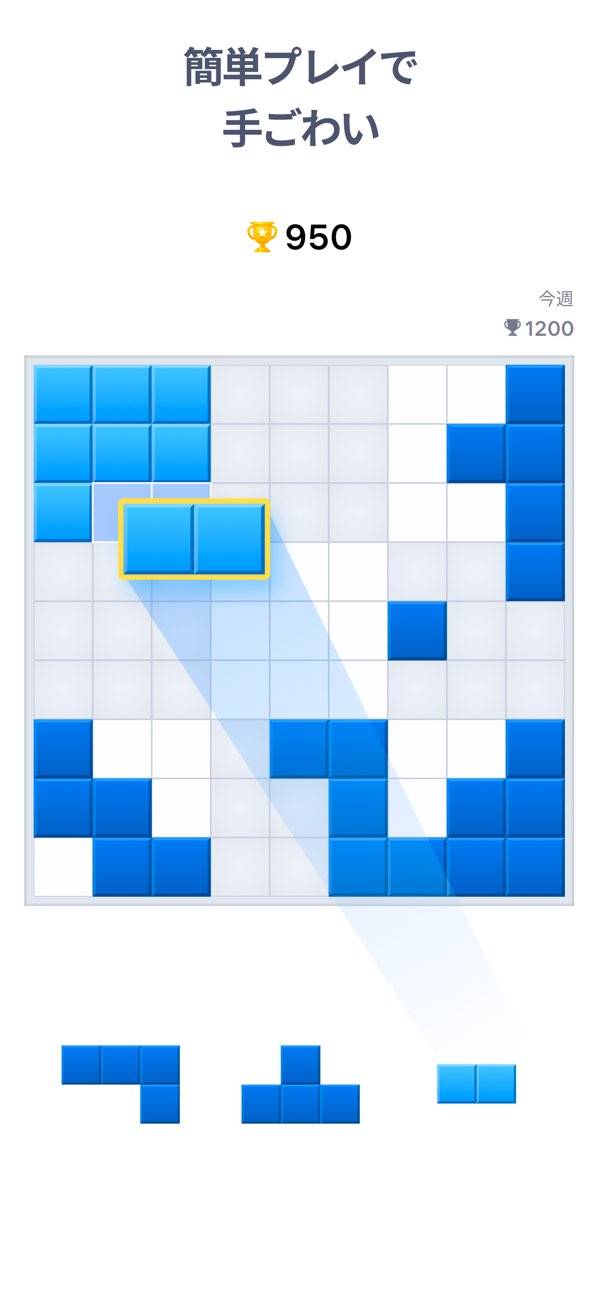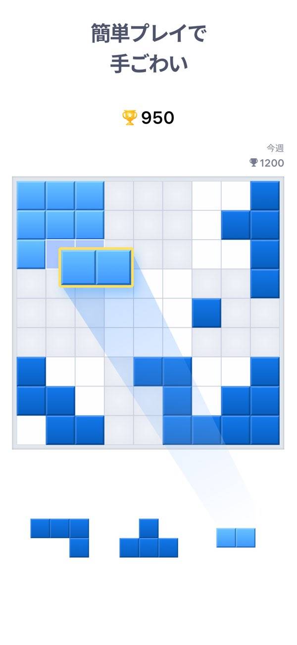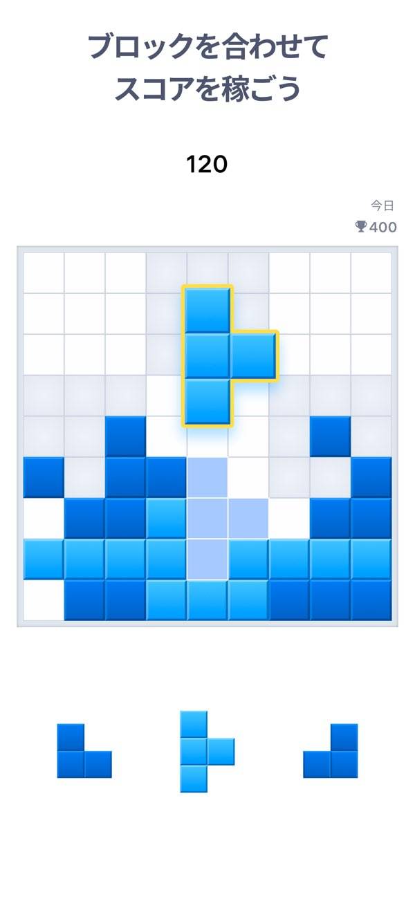 数独とパズルを組み合わせたブロックパズルゲーム。ランダムに出てくるブロックを合わせていき、高スコアを目指すという内容です。ブロックを置くところがなくなると、ゲームが終了してしまいます。スペースを考えてブロックの配置を決めましょう。