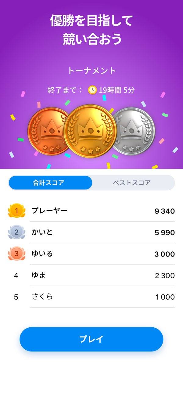 - マス目にブロックを合わせてスコアを稼ぐ。トーナメントで対戦も可能