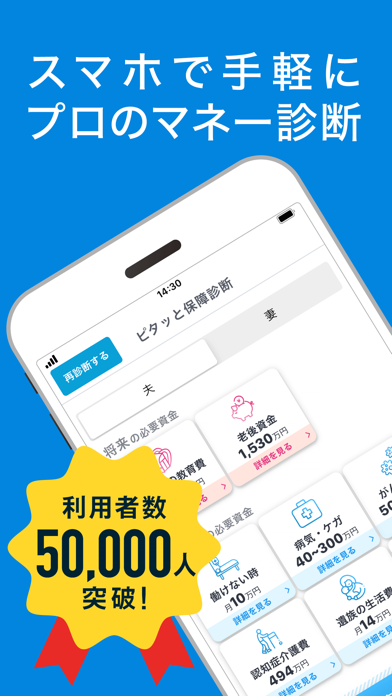保険の必要額がわからなくて悩んでいませんか。本アプリは、職歴や家族構成を入力するだけで最短1分であなた専用の保障額を自動計算してくれます。さらに、フィナンシャルプランナーへの無料相談が可能。オンラインだけでなくオフラインでの無料相談予約にも対応しているので、より安心感を得られます。