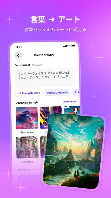 - パステルやファンタジーなど、30種類以上のアートスタイルを選べる