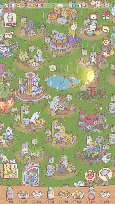 可愛いネコ達が、材料を切ったり、その材料を別の猫に渡してスープやジュースを作ったり。眺めているだけでも本当に可愛い!魚釣りで釣った魚を猫に食べさせたり、クレーンゲームでコイン稼いだり、洋服を着せたり。動画見て放置するだけなんだけど、何かポチポチできてしまうゆるーい放置ゲームです。