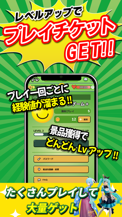 ▲プレイするたび経験値が貯まり、レベルが上がると無料チケットなどの報酬が貰えるぞ。