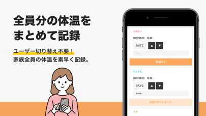 - ユーザーの切り替え操作は不要。家族の体温をスムーズに記録できる
