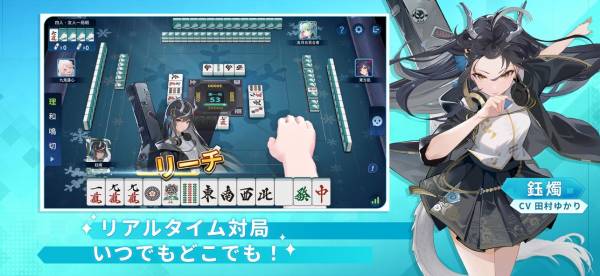 手配を切るのに時間制限があるので、対局がサクサク進みます。鳴きやあがりのときなど、人気声優のセリフにも注目です。「チー!」「ポン!」「カン!」などなど人気声優によるボイスは必聴の価値アリです。