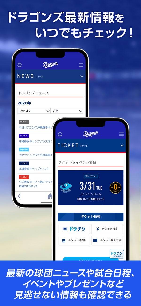 買う、知る、遊ぶ 中日ドラゴンズをもっと楽しむ球団公式アプリ