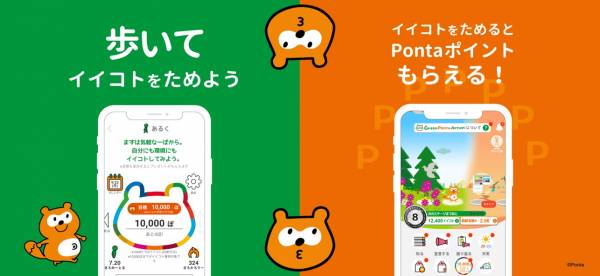 - 歩いた歩数に応じて自動でPontaポイントが貯まる。SDGsの知識も紹介