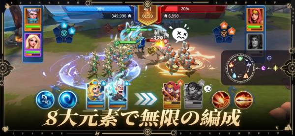 世界の猛者たちとの白熱のバトルが展開。包囲戦や突撃戦など、敵や状況に合わせて、多彩な戦術を駆使しましょう。バトルは3Dのグラフィックで描かれており、オートでサクサク進みます。