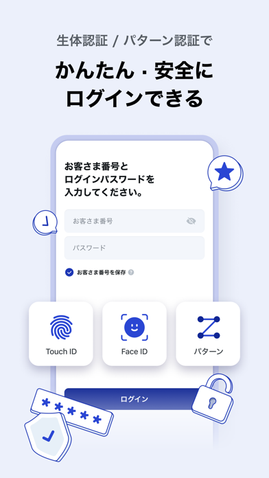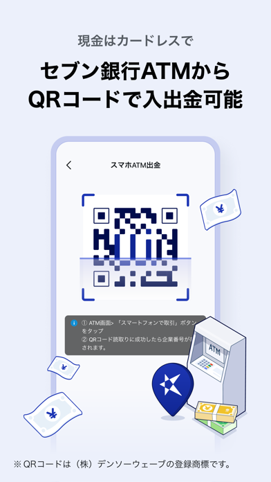 取引明細の確認や振込、預金の管理など多彩な機能を備えています。店舗やATMに行かなくても、好きなときに各種の機能を利用可能。またQRコード読み取りで“スマホATM”に対応したATMを使えます。ログイン時は2段階認証があり、セキュリティも万全。