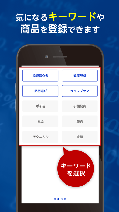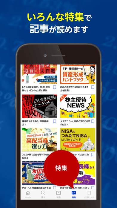 投資の知識を身につけたい方に最適なアプリ。投資家のリアルな話や解説動画が豊富です。個々のレベルに応じたおすすめのトピックを表示してくれるので、段階的な学習が可能。ライフプランや資産形成など、投資をするための全般的な知識が得られます。