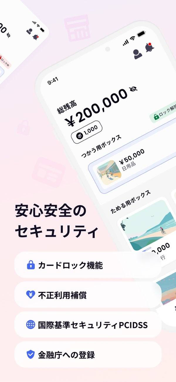決済に使えるだけでなく、貯蓄が進む特典・機能も備えたプリペイドアプリです。本アプリから専用のVisaプリペイドカードを発行可能。電話番号とメールアドレスだけの簡単登録。