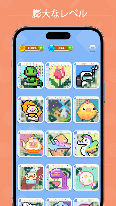 マス目を塗りつぶしてドット絵を完成させる、イラストロジックアプリ。9,000以上の問題を収録しており、完成させるたびにさまざまなカラーイラストを見られます。簡単な難易度の問題も充実しているため、初心者も安心。ジグソーパズルなど、ロジック以外の要素でも遊べるため、見た目以上のボリュームが楽しめます。