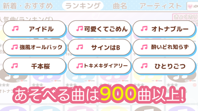 豊富な楽曲から好きな曲を選んで演奏を楽しめるアプリです。新着・おすすめ / ランキング / 曲名 / アーティストとタグ分けされているため、好きな手段で楽曲を探せます。ジャンルは子供から大人まで楽しめる幅広い楽曲がそろっていますよ。