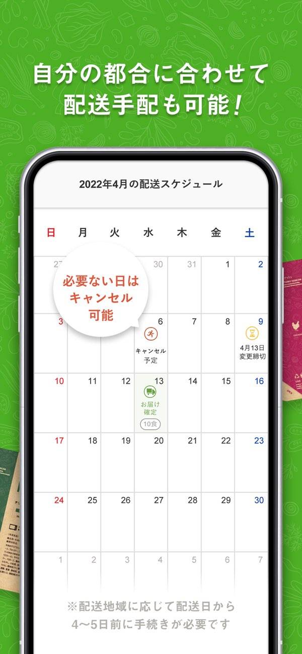 1週間に1回など、配送スケジュールを自由に選べます。また必要のない週は配送のスキップ手続きが可能。出張などで家を空ける場合など、生活パターンに合わせて無理なく続けられるのがメリットです。