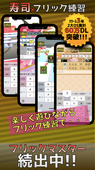 - 某寿司タイピングゲームに似たフリック入力練習アプリ