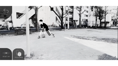 広い場所でアプリを起動すると、2m先に”宮城リョータ”が現れます。彼のドリブル練習を自分の好きな位置から見られるのがポイント。画面に集中しすぎてしまうかもしれないので、周囲の安全には注意しましょう。