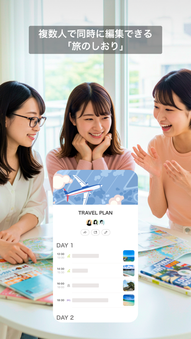 遠足気分になれる、旅のしおりを作成できます。行先と移動時間などを書き込んだタイムスケジュールを組み立て可能。ほかユーザーとシェアもでき、遠出する気分を事前に盛り上げられます。