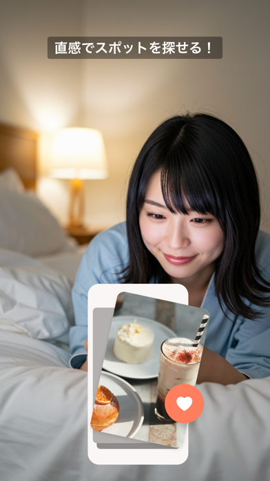 日本全国のおすすめスポットをカード形式に表示。内容は現在地周辺、日本全国、指定した都道府県などに絞り込みできます。「いいな」と思ったら右にスワイプして行きたいリストに追加。直感的にスポットを検索できるアプリです。
