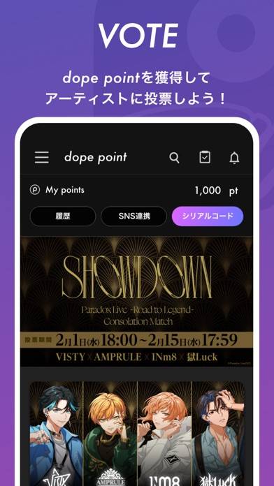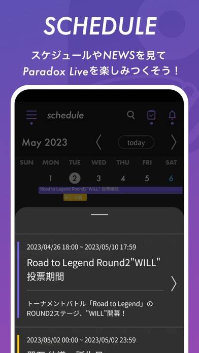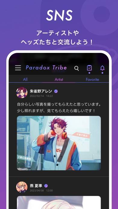 HIPHOPとアニメのコラボ企画Paradox Liveの活動をさらに楽しめるアプリ。アーティストの投稿にリプライやいいねができます。予定管理が可能なスケジュール機能も搭載。ファンはこれらを通じて、お気に入りのアーティストとの距離を縮め、彼らの活動を密に追いかけることができるでしょう。
