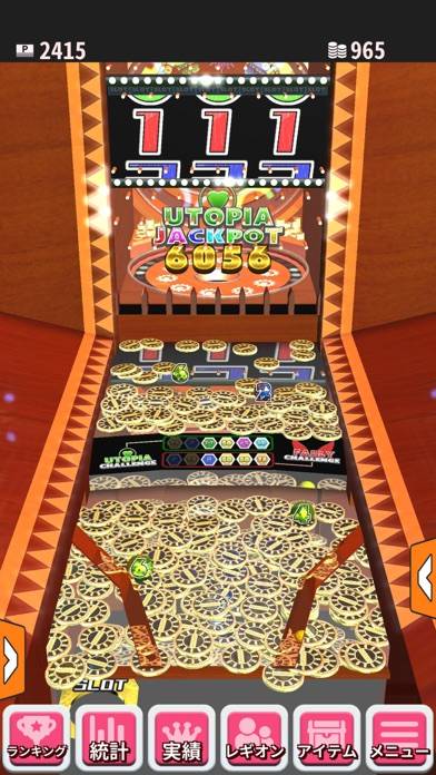 ゲームを攻略すると、ジャックポットチャレンジできる。ハマればどこまで続くかわからない一獲千金のチャンス。貯めたコインで運試しをして何千枚ものメダルを狙おう。
